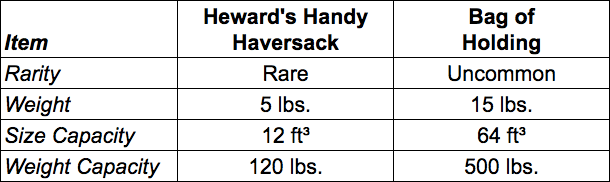 If Bag of Holding is better pound-for-pound, why is Heward’s Handy Haversack more rare?