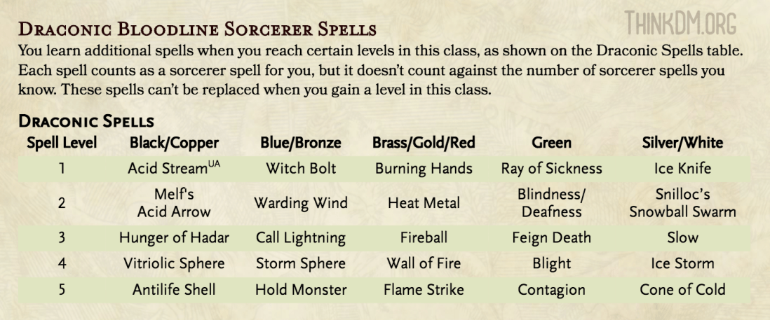 Draconic Bloodline Expanded Spells